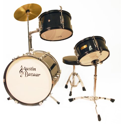 Best guide Austin Bazaar 3-Piece Kids Black Drumset With 16 Bass Drum, Snare, Cymbal, Pedal,. The Barcelona 3-Piece Kids Drumset is the perfect size for kids ages 4 - 10! It includes everything you need to get rockin' right out of the box - a drum throne, bass drum pedal, a crash cymbal, and a pair of sticks! Its durable quality will hold up to your child's playing. It features real wood multi-ply shells, fully tunable top and bottom heads and metal hardware The 16" bass drum (with 12 tuning rods and lugs) has attractive color-matched inlaid rims so your little rockstar will look like ... ... >> Read More at Amazon.com