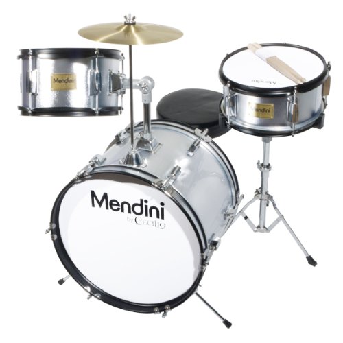 Mendini by Cecilio 3-piece Jr. drum set is a fully functional drum set designed specifically for kids. This set includes bass drum, a tom drum, snare drum, and cymbal. Assembly Required.Bass Drum: 16" x 11", Hanging Tom: 10" x 6" 10" x 5" snare drum with stand 9.5" cymbal with bass mounted holder Includes: bass drum chain driven pedal, a pair of wooden drum sticks, and an adjustable round padded drum throne (seat) 1 Year Warranty Against Manufacturer's Defects ...Read More at Amazon.com